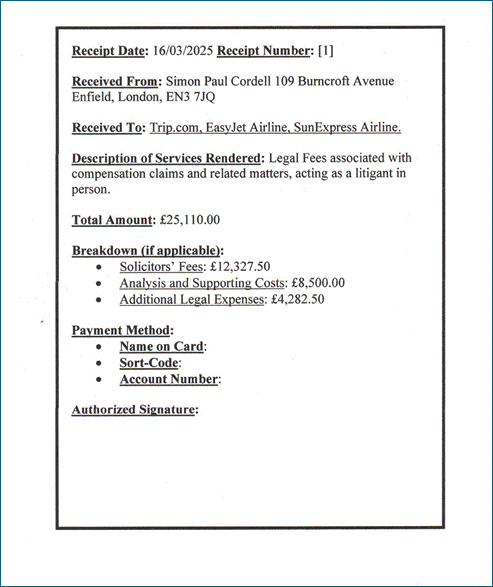 for Receipt: “EasyJet”-09-01-25—1051 Total £40:00: Exhibit: