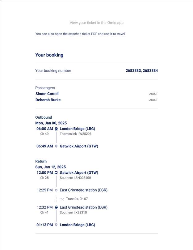 1) Coach Service from Gatwick Airport to East Grinstead: I departed at 12:00 PM on a replacement coach service. The estimated travel time was around 30 minutes, meaning I arrived at East Grinstead at approximately 12:30 PM.