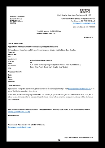 We have booked the earliest available appointment for you to attend a dental clinic at Guys Hospital.