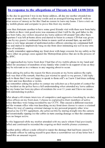 In response to the allegations of Threats to kill 14/08/2016