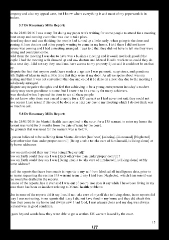 On the 25/01/2016 the Mental Health team applied to the court for a 135 warrant to enter my home the