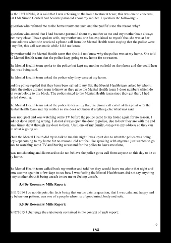 On the 19/11/2016, it is said that I was referring to the home treatment team; this was due to concerns,