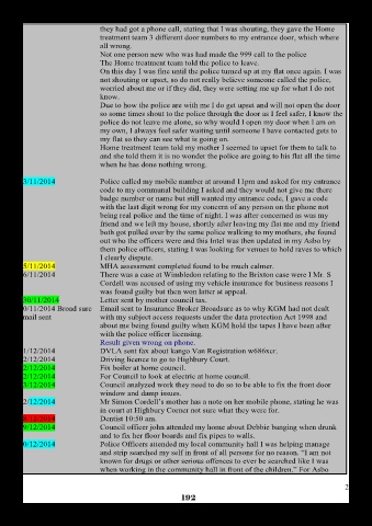09/12/2014 Council officer john attended my home about Debbie banging when drunk