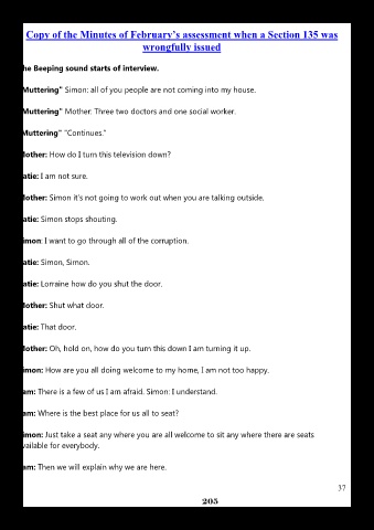 Copy of the Minutes of February’s assessment when a Section 135 was