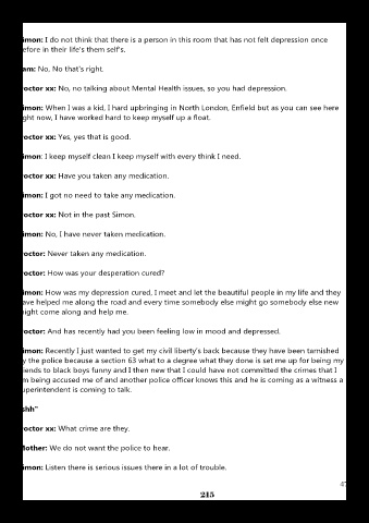 Doctor xx: No, no talking about Mental Health issues, so you had depression.