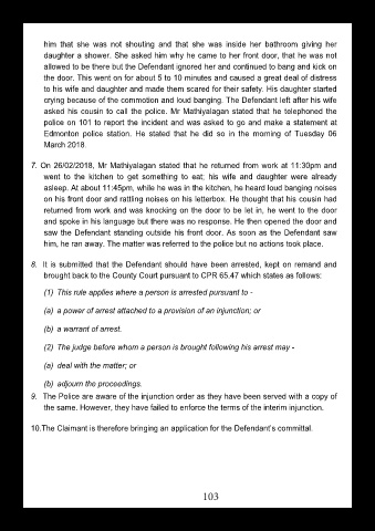 7. On 26/02/2018, Mr Mathiyalagan stated that he returned from work at 11:30pm and