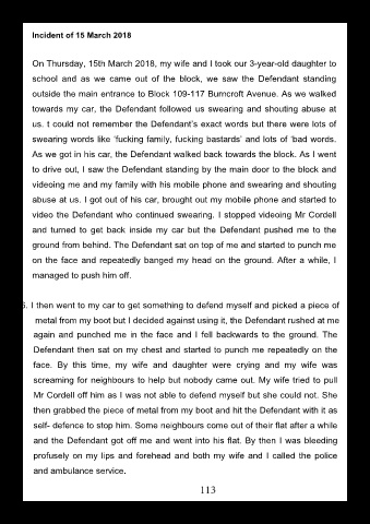 metal from my boot but I decided against using it, the Defendant rushed at me