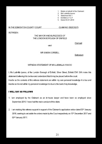 1. lam employed by the Claimant as an in-house lawyer and have been so employed since