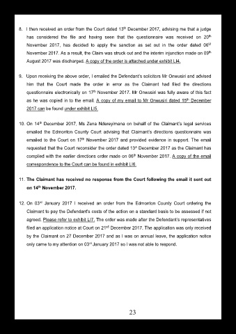 8. I then received an order from the Court dated 13 December 2017, advising me that a judge