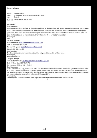Sent: 15 December 2017 13:36 'emmanuel RE: LBE v
