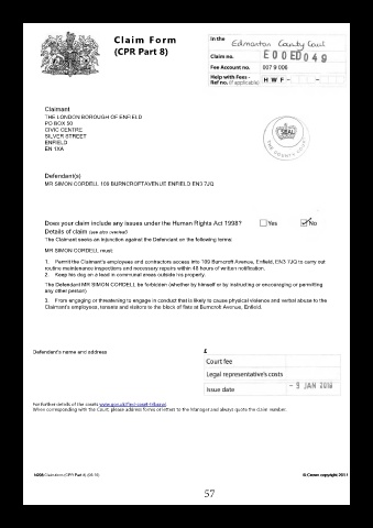 N N208 Claim form (CPR Part 8) (06.16) © © Crown copyright 201 f f