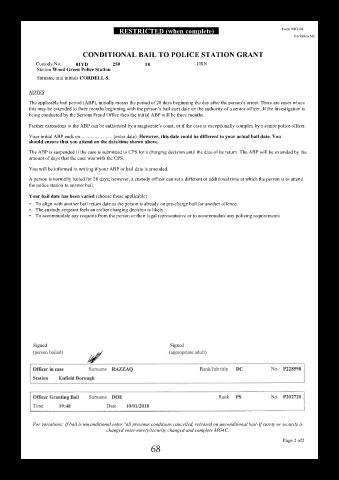 CONDITIONAL BAIL TO POLICE STATION GRANT
