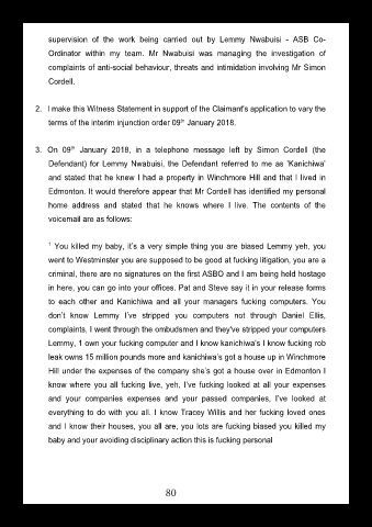 3. On 09 January 2018, in a telephone message left by Simon Cordell (the