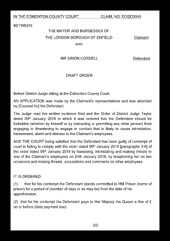 THE LONDON BOROUGH OF ENFIELD Claimant