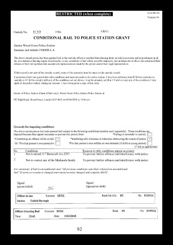 CONDITIONAL BAIL TO POLICE STATION GRANT