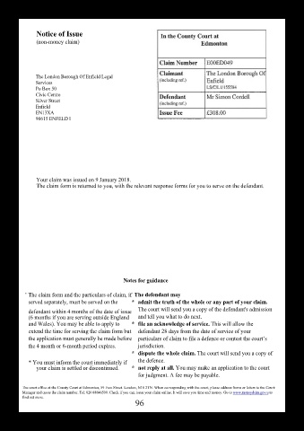 The claim form is returned to you, with the relevant response forms for you to serve on the defendant.