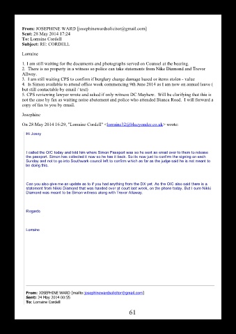 5. CPS reviewing lawyer wrote and asked if only witness DC Mayhew. Will be clarifying that this is