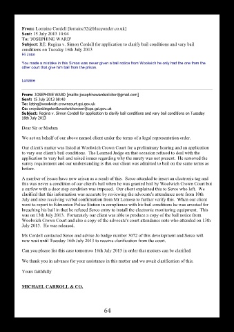 You made a mistake in this Simon was never given a bail notice from Woolwich he only had the one from the