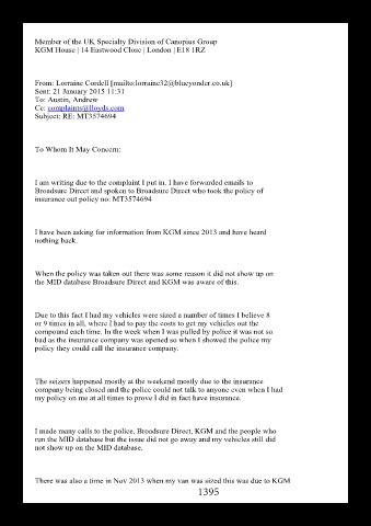 I made many calls to the police, Broadsure Direct, KGM and the people who
