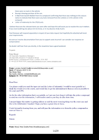 E‐Mail from Gareth Mullett from the compound confirming that there was nothing on the seizure