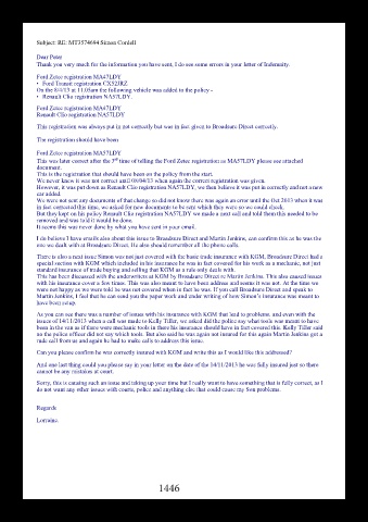 But they kept on his policy Renault Clio registration NA57LDY we made a next call and told them this needed to be