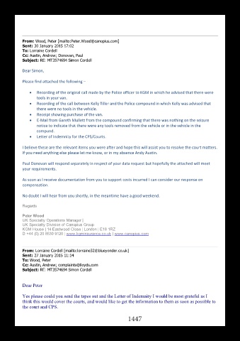 E‐Mail from Gareth Mullett from the compound confirming that there was nothing on the seizure