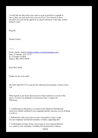 1. Confirmation of the points you raised to the Financial Ombudsman