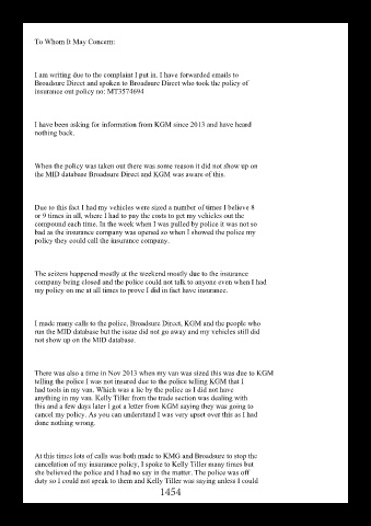 I made many calls to the police, Broadsure Direct, KGM and the people who