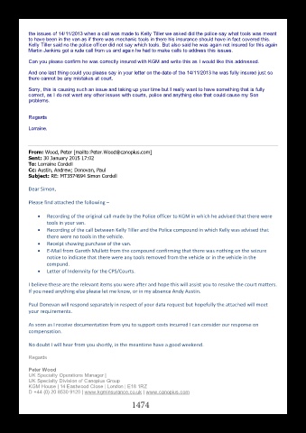 the issues of 14/11/2013 when a call was made to Kelly Tiller we asked did the police say what tools was meant
