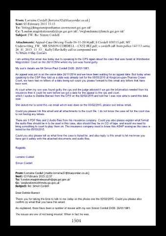 I am writing this email due today due to speaking to the CPS again about the case that was heard at Wimbledon