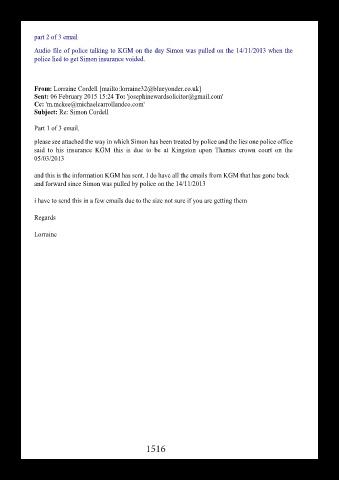 please see attached the way in which Simon has been treated by police and the lies one police office