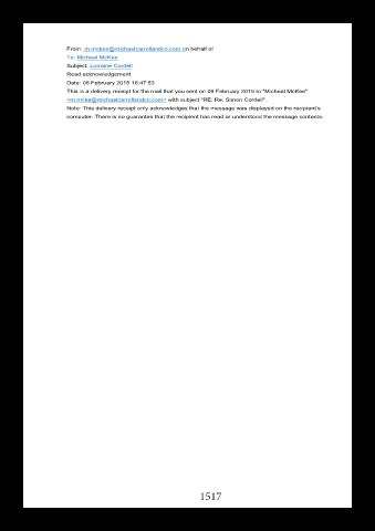 This is a delivery receipt for the mail that you sent on 06 February 2015 to "Micheal McKee"