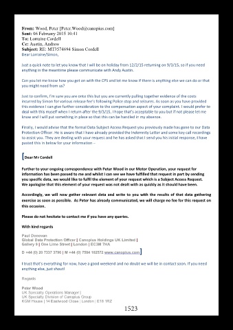 Finally, I would advise that the formal Data Subject Access Request you previously made has gone to our Data