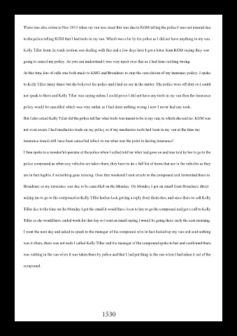 not speak to them and Kelly Tiller was saying unless I could prove I did not have any tools in my van then the insurance