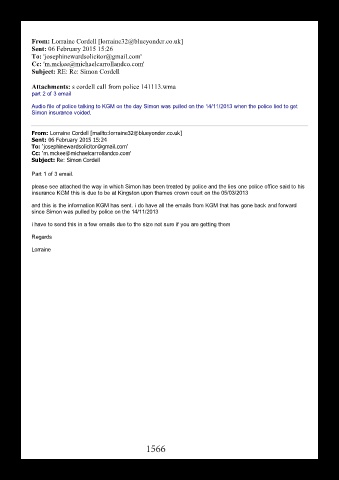 please see attached the way in which Simon has been treated by police and the lies one police office said to his