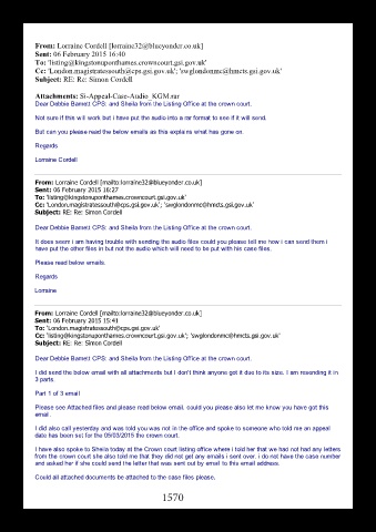 from the crown court she also told me that they did not get any emails i sent over. i do not have the case number