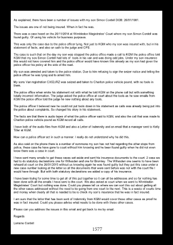 There was a case heard on the 26/11/2014 at Wimbledon Magistrates' Court where my son Simon Cordell was