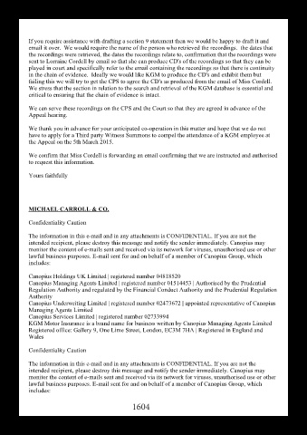 failing this we will try to get the CPS to agree the CD's as produced from the email of Miss Cordell.