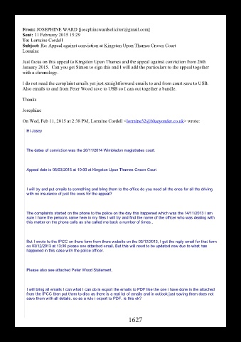 Also emails to and from Peter Wood save to USB so I can out together a bundle.
