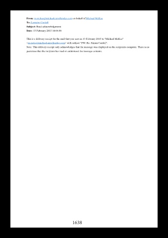 This is a delivery receipt for the mail that you sent on 13 February 2015 to "Micheal McKee"