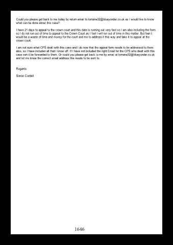 so I do not run out of time to appeal to the Crown Court as I feel I will run out of time in this matter. But feel it