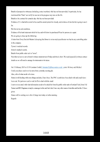 Note that we have to serve Simon's witness statement next Friday and time is short. We need (especially) witness contact