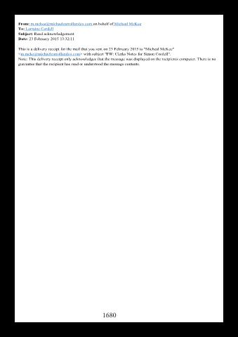 This is a delivery receipt for the mail that you sent on 23 February 2015 to "Micheal McKee"