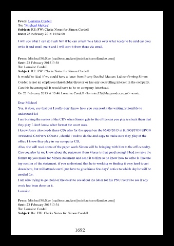 Subject: RE: FW: Clerks Notes for Simon Cordell > lorraine32@blueyonder.co.uk> wrote: