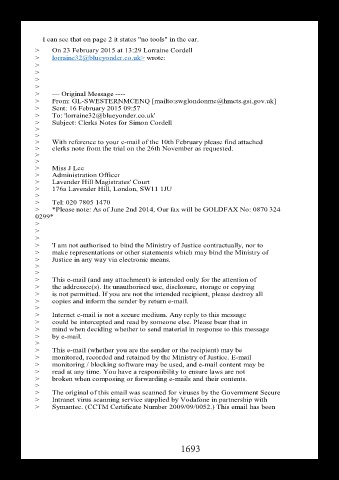 > 'I am not authorised to bind the Ministry of Justice contractually, nor to