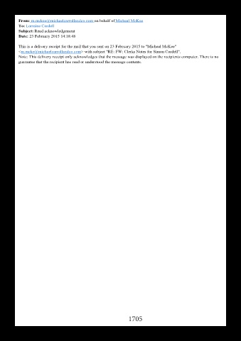 This is a delivery receipt for the mail that you sent on 23 February 2015 to "Micheal McKee"