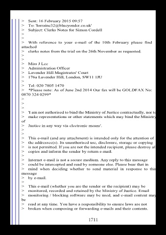> monitored, recorded and retained by the Ministry of Justice. Email