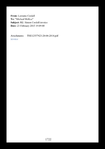 From: Lorraine Cordell To: "Micheal McKee" Subject: RE: Simon Cordell invoice Date: 23 February 2015 19:09:00 Attachments: TSE12557923-20-06-2014.pdf invoice 1722