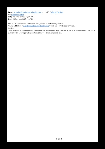 This is a delivery receipt for the mail that you sent on 23 February 2015 to