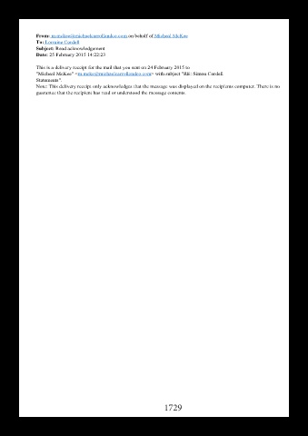 This is a delivery receipt for the mail that you sent on 24 February 2015 to